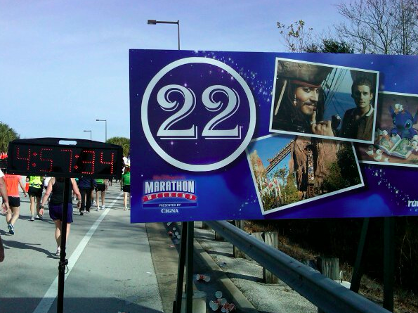 Being such a Disney fan I have walked around the World Showcase dozens of time…so many times that I knew it wasn’t much further after leaving EPCOT and heading toward the EPCOT parking lot before I would see my final mile marker!